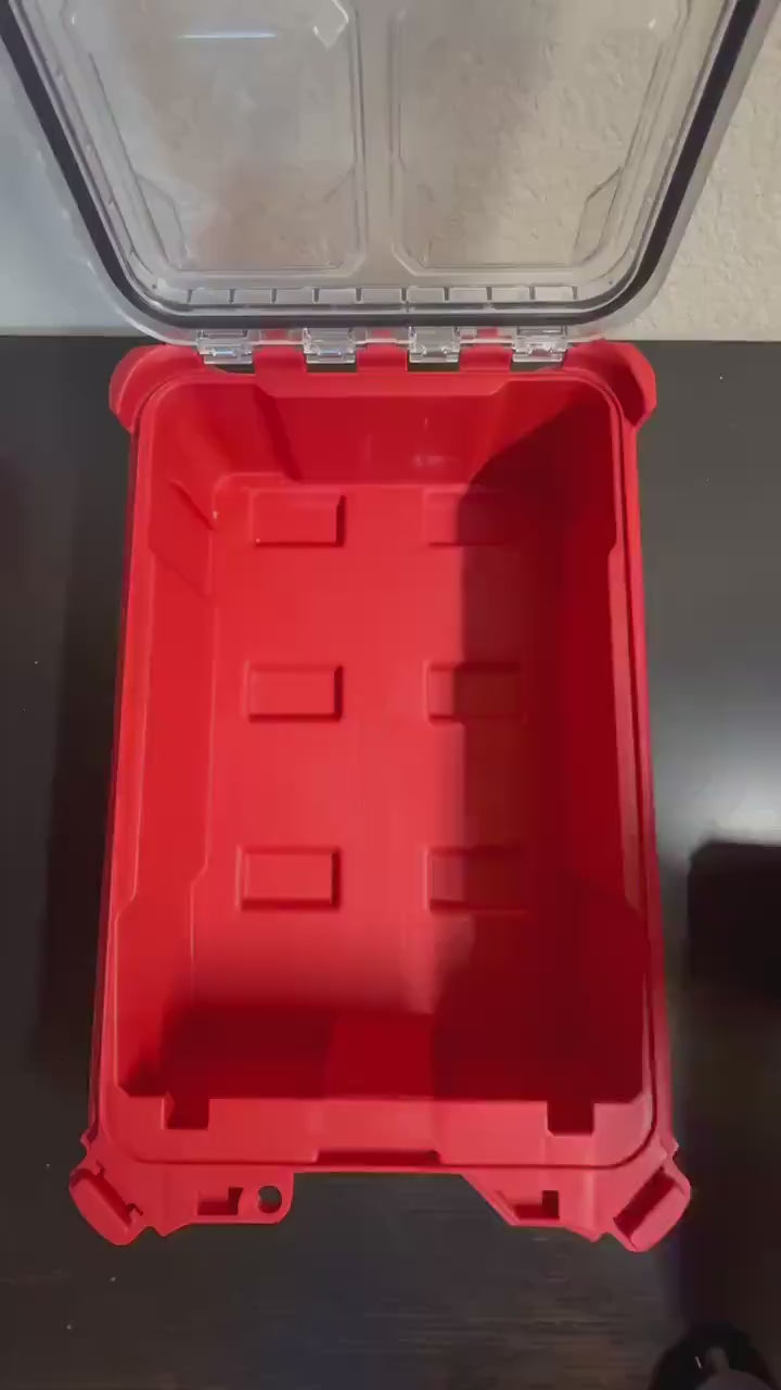 Only the 3D printed magazine insert is included. The Milwaukee Packout Organizer, magazines, and ammunition are shown for demonstration purposes only.